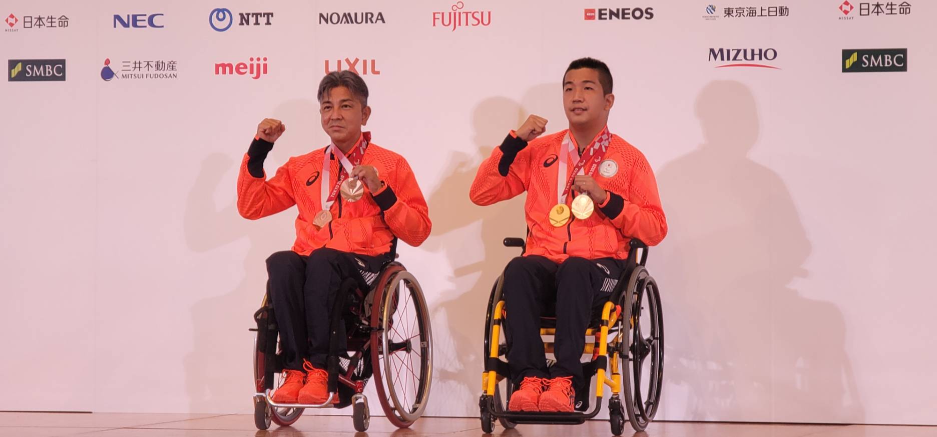東京2020パラリンピック競技大会にて、金メダルを獲得した佐藤友祈選手(陸上男子1500メートルT51・52、400メートルT52)と、銅メダルを獲得した上与那原寛和選手(陸上男子1500メートルT51・52、400メートルT52)が8月30日、記者会見に出席し、メダル獲得から一夜明け、それぞれ心境を語りました。